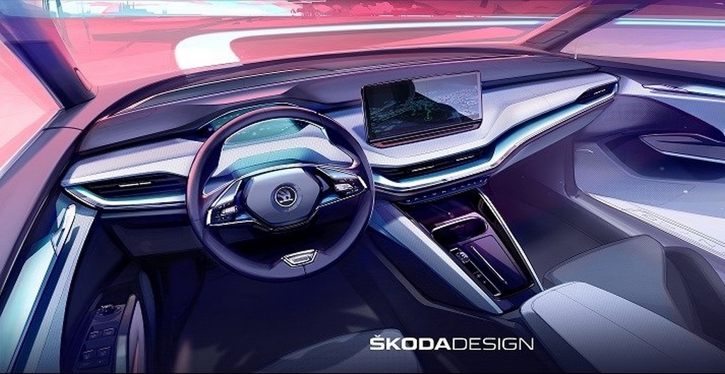 Skoda Enyaq iV electric SUV interior design has been revealed by the Czech automaker, ahead of its world premiere that is scheduled to take place on 1st September.