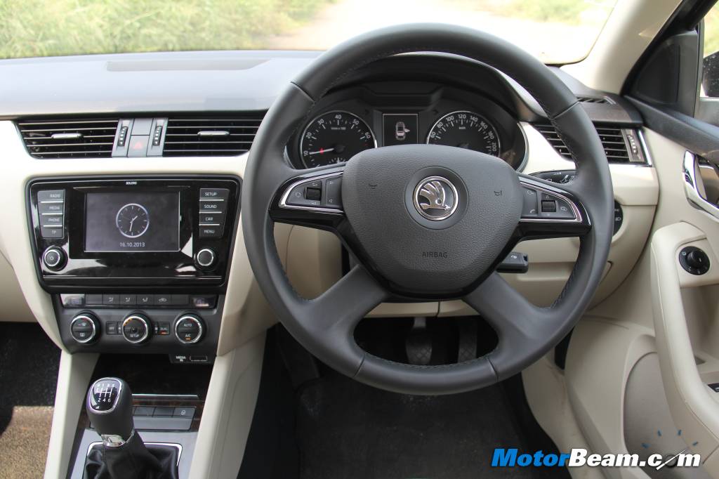 Interiors – There is absolutely nothing to fault with the interior quality of all these three cars. Excellent fit and finish levels are found in each of them, which is very much expected from cars of this price. The Jetta’s dashboard is plain and simple and that gets it into boring territory. The Octavia’s dashboard is very appealing with the unique steering and nice choice of colours. But when it comes to the overall appeal of the dashboard, Hyundai again comes out on top. The Elantra’s dashboard is simply splendid and the design is oh so eye catchy. What further tilts the interior verdict in the Elantra’s favour are the features on offer. While the other two cars come with a key, the Elantra uses keyless entry with button start. We also like the Elantra’s instrument cluster better than the other two but the Hyundai is the only car which doesn’t show distance to empty on its multi-information display. Also the infotainment system on the Elantra isn’t as easy to use as on the other cars. In terms of features, all cars are well matched as you get all the bells and whistles expected as standard on these vehicles (some cars might offer something extra but that isn’t a deal breaker as you end up paying more for that variant).