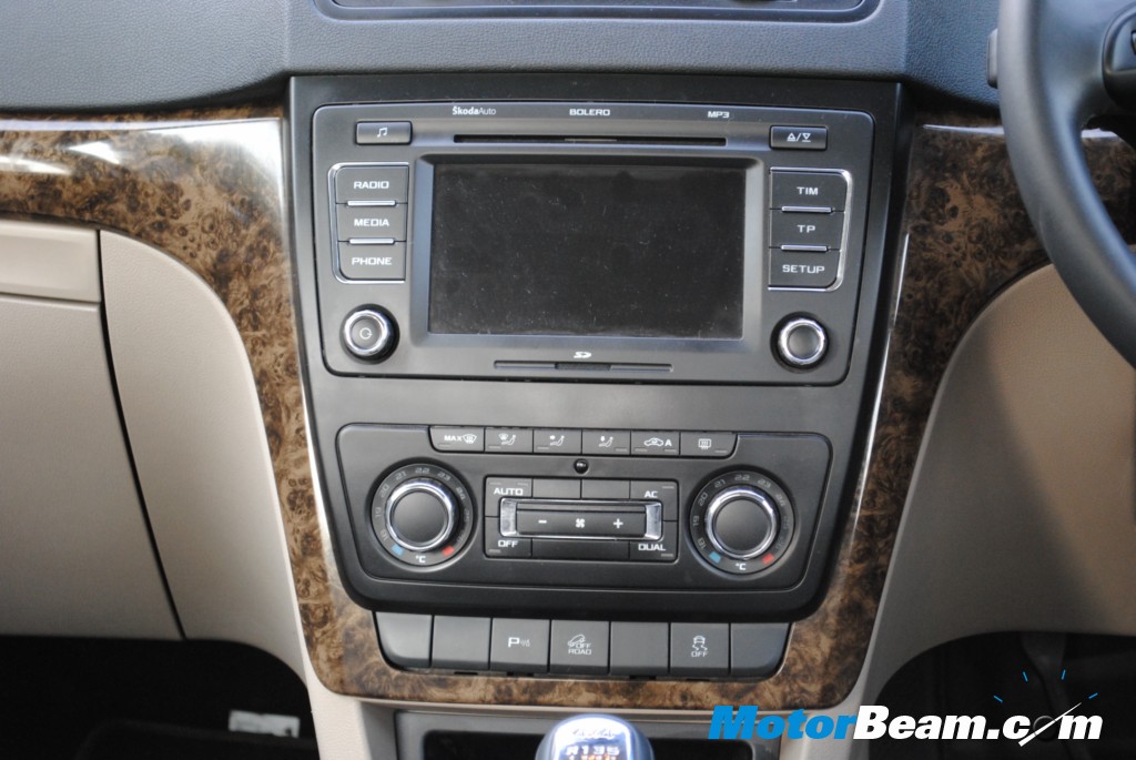 Interiors – Buckle up and one can’t miss the interior quality which deserves a special mention with fit and finish being one of the best. A touch of wood on the dash amplifies the appeal of the Yeti further.