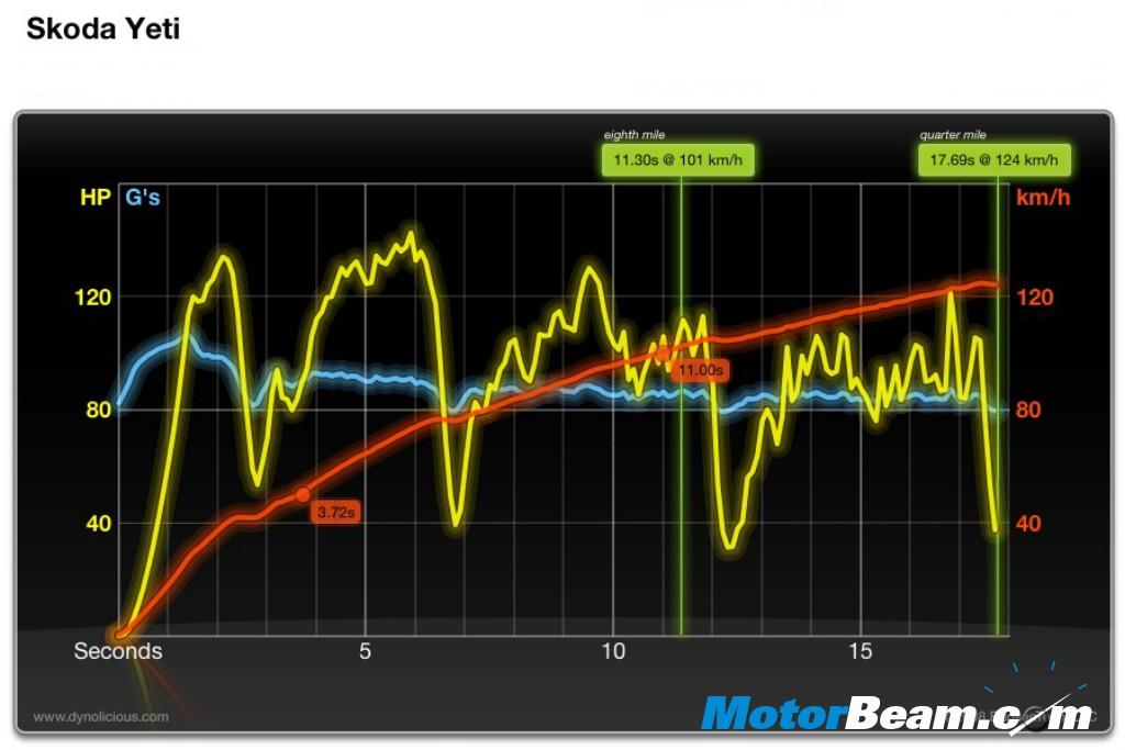 The Yeti stopped the clocks in exactly 11 seconds on a 0 – 100 dash. This robust TDI engine is mated to a 6 speed manual gearbox which is slick to shift. The worst mileage we got was 9.5 kmpl and we expect the Yeti to deliver an overall mileage of 14 – 15 kmpl.