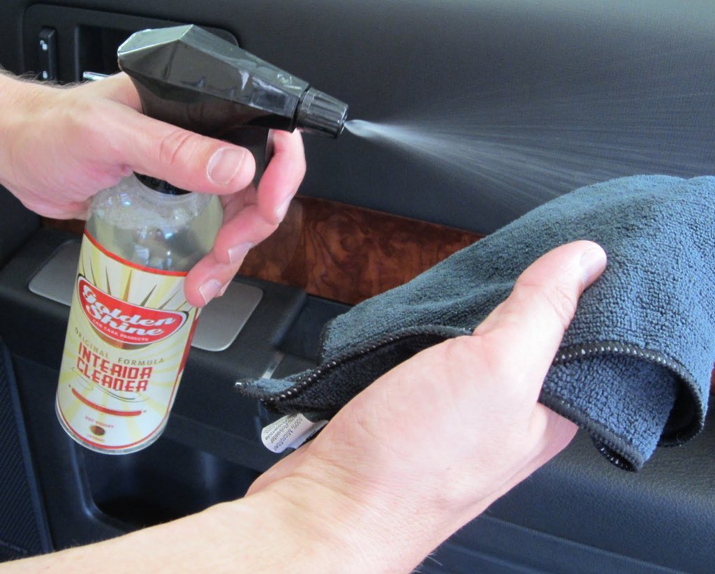 You will get the best results from using a upholstery cleaner. Not only will the stains come out, it will restore the shine leaving your interior looking new and fresh. You have plenty of options to choose from in the market. Look for an upholstery cleaner specific to your fabric type. You also get foam cleaners, which just need to be applied and then rubbed using a cloth.