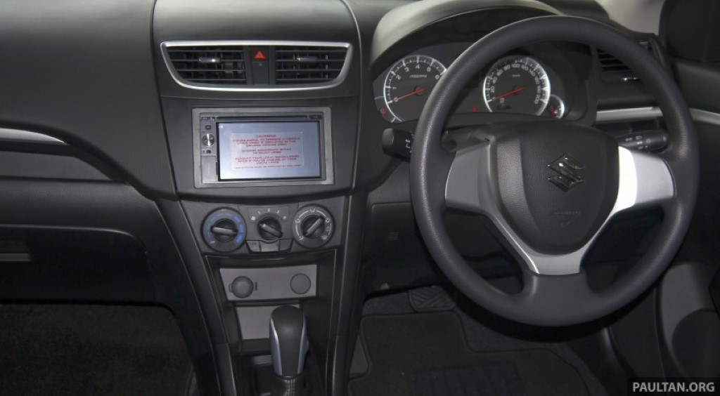 Suzuki has done a slight makeover job for the exteriors of the Swift by adding front and rear bumper splitters, side body skirts and a roof spoiler. We can see two black stripes have been added to the bonnet section which extend on to the roof section and the boot lid. Racing decals have been added to the side doors. The front bumper has been blackened just below the grille which adds to the sporty character of the vehicle. The Swift also comes with 15-inch black alloy wheels.