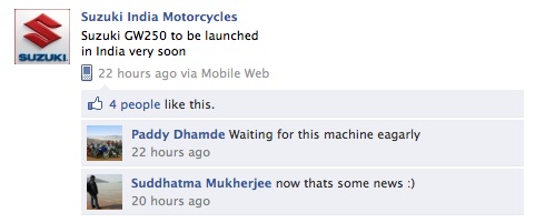 Edit 4/2/2011 – The news was fake and was posted by a Suzuki fan and not by Suzuki Motorcycles India.