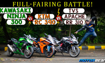 Detailed comparison shootout of the best 300cc fully faired motorcycles Kawasaki Ninja 300 vs KTM RC 390 vs TVS Apache RR 310
