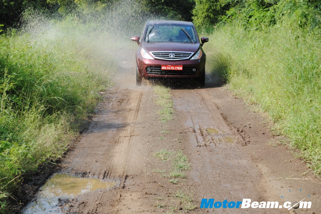 The Aria has been designed as a crossover, a vehicle which can conquer most terrains and the Aria proves to do well in most. We drove it through slush and through grass and were impressed. Traction control and electronic stability program made sure we did not get stuck. (ESP cannot be turned off). High speeds dont unsettle the Aria in a straight line and it does not feel as if it will just topple over (a feeling often witnessed in the Safari). It is much more settled and drivability is above expectations.