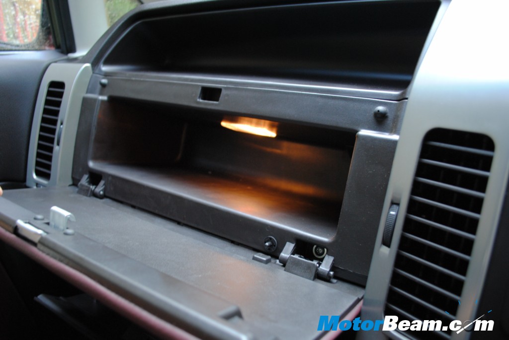 Glove compartment has got rubber stoppers to minimize the rattling. Glove box is aircooled to keep your drinks chilled (No Drinking and Driving please) and a small light keeps the glovebox lit at night.