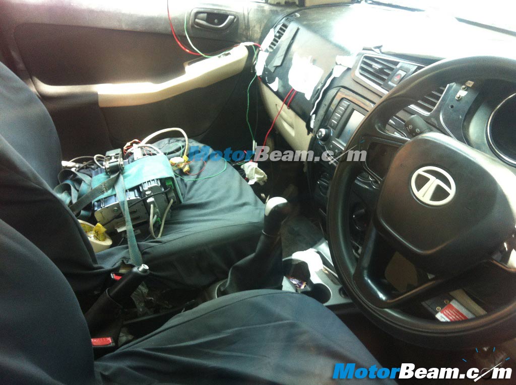 Tata Motors is still tinkering with the Bolt hatchback, even as the launch date for the hatchback comes closer by the day. The Bolt was caught on test in Bangalore by our reader Mr. Hari Krishnan in Kormangala, Bangalore. Hari managed to capture not only the heavily camouflaged exterior shots, but also the interior images of the hatchback. The interiors are true to the prototype showcased earlier this year. The funky orange colour shade though is replaced by a sober looking beige, but the dual tone look has been retained.