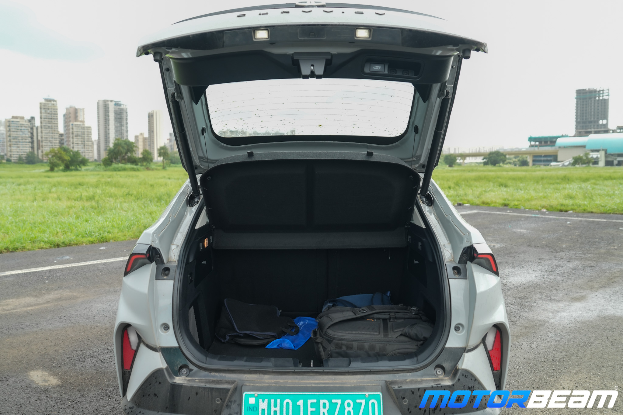 The Curvv EV’s 500L boot is well-shaped and can carry three or even four large suitcases comfortably. The portable charger that comes with the car doesn’t take up much space. The electric tailgate comes in handy and one can operate it from the centre console, key fob or hands free by moving your leg below the rear bumper. The coupe-SUV design means the hatch opens fairly tall and you need to be careful in multi-level parking spots. There’s also an 11.6-litre frunk. The frunk cover feels flimsy but it has foam inserts below it to keep things from moving around. To me, this felt the perfect place to store the portable charger.