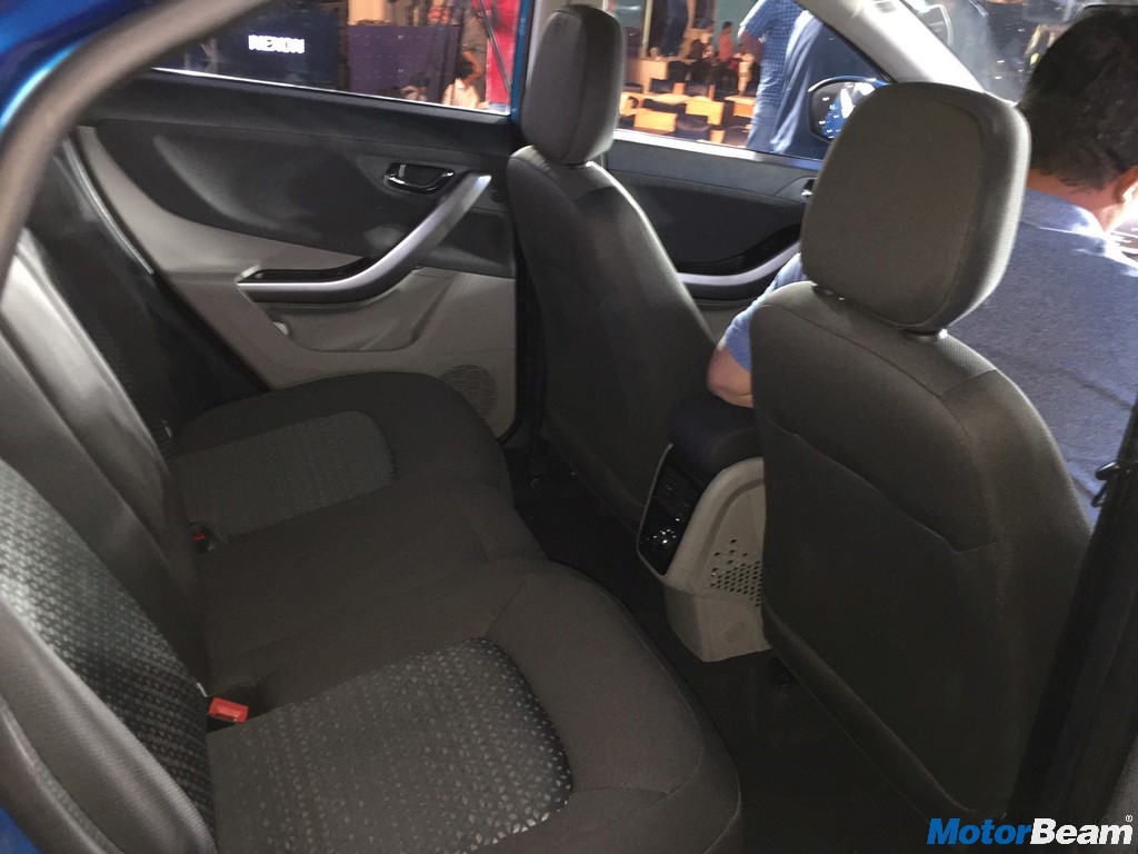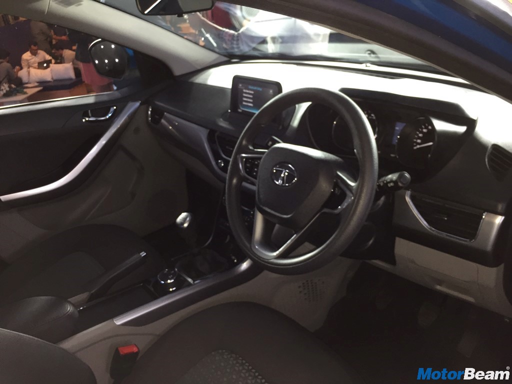 Interiors – While there are parts inside the cabin that will remind you of other Tata cars, the design of the dashboard is completely new. The Nexon features a 3-tone dashboard. There is a multi-function steering wheel and a floating touchscreen infotainment system with Android Auto connectivity. The cabin is loaded with features like automatic climate control, rear AC vents, 8-speaker Harman Sound System, voice commands and wearable key. A number of storage spaces make the cabin practical. Dual airbags and ABS are standard across all variants.
