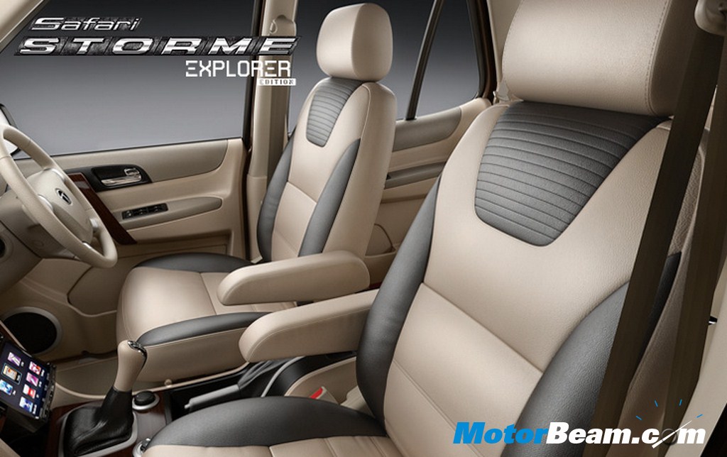 On the inside, the Safari Storme Explorer Edition comes with leather seat covers and additional features such as 2-DIN touch screen infotainment system with Bluetooth connectivity and provision for reverse parking camera. There is an additional Garmin navigation device too. The Explorer Edition is available at all showrooms starting at Rs. 10,86,000/- (ex-showroom, Delhi). The base LX variant of the Safari Storme retails at Rs. 10.29 lakhs (ex-showroom, Delhi) so there is a price difference of Rs. 57,000/-. The special edition Safari has been launched in order to push sales, which stand at 598 units for the month of July.