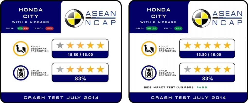 Finally, the ASEAN NCAP has tested the fourth generation Honda City. The SV 1.5-litre petrol variant has been tested and it comes with dual front airbags, ESC and ABS. The Indian production variant, however, does not get ESC. The City scored 15.80 points which translates to 4 stars out of 5 for the dual airbag version and 5 stars for the variant with 6 airbags. The City too provides good impact resistance for most body parts, just like the Jazz. Meanwhile Global NCAP will be testing more cars in India in the near future.
