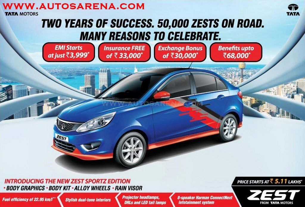 – Tata Motors has launched the Zest Sportz Edition variant to commemorate 2 years and 50,000 units