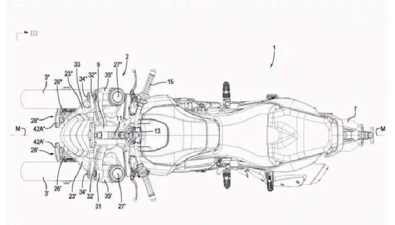 Further, the bike in the patent resembles the Aprilia Mana 850, especially towards the rear half. Whether the three-wheeler offering will share the mechanicals with the Mana 850 is still a mystery, though.