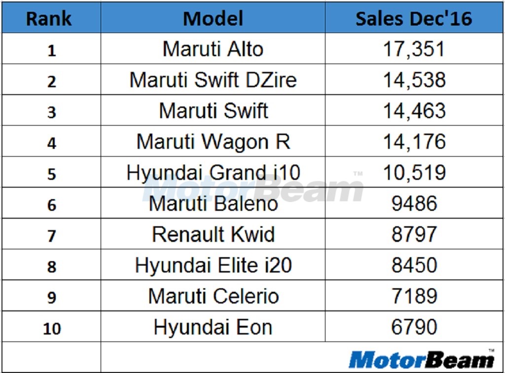 As usual, the Maruti Alto is at the top of the list with sales of 17,351 units. The Maruti DZire takes the second spot at 14,643 units. Do note that sales of both the cars have taken a slight hit as the Alto usually sells more than 20,000 units a month while the DZire does around 17,000-odd units.