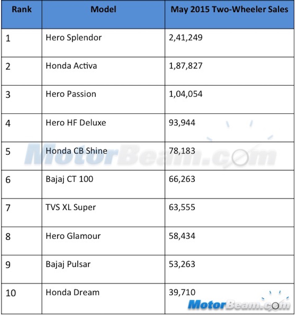May 2015 saw sales grow steadily for most two-wheelers wherein motorcycles have seen limited growth while scooters continue to have a healthy run on the sales chart.