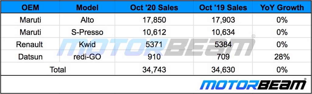 Renault sold 5371 units of the Kwid, while Datsun sold 910 units of the redi-GO. Overall, sales were on a par with the numbers registered during the same period one year ago.