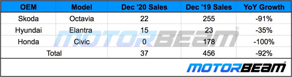 Which means, in the December 2020 sedan sales list, the Skoda Octavia becomes the new D-segment leader. But, with only 22 unit sales, it is hardly an achievement.