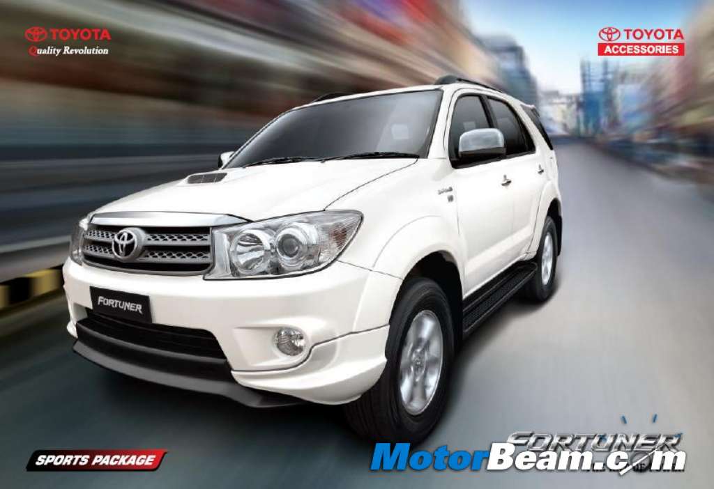 Toyota India has launched a Sports Package for the Fortuner. The Toyota Fortuner Sports Package is priced at Rs. 42,650/-. The Sports Package features floor mats, rear spoiler, muffler cutter, front and rear skirts. Although the kit does not offer any performance boost to the Fortuner in any way, it will appeal to Fortuner owners who wish to make their SUVs stand out of the crowd.