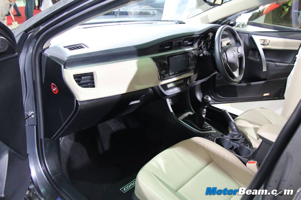 Overall, the 2014 Toyota Corolla looks new from possibly every angle and exudes a far more confident and striking body language than its predecessor. The strong profile continues on the inside as well with the cabin receiving distinctive styling that looks smart and cool. Finished in black and beige, the cabin features a 3-spoke multi-function steering wheel, 7-inch touchscreen infotainment system with Navigation, USB, AUX, SD Card and Bluetooth connectivity.