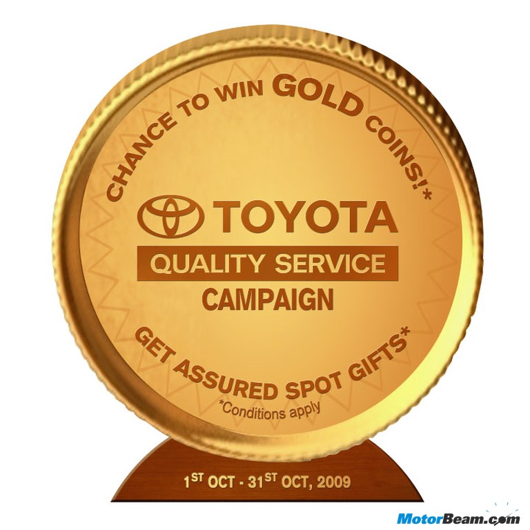In line with its Customer First philosophy, Toyota India is inviting all it’s customers to Welcome Back – a unique campaign that offers Go for the Gold, with Toyota Quality Service and Assured Gifts to every customer on the purchase of special parts package. Toyota wishes to rejoice this Diwali, with its customers, through this unique, 31 day long Festive Campaign, at all dealerships across the India, starting from 1st October, 2009.