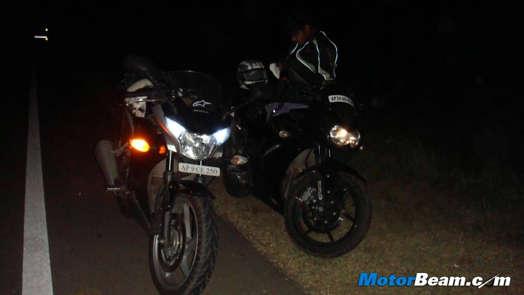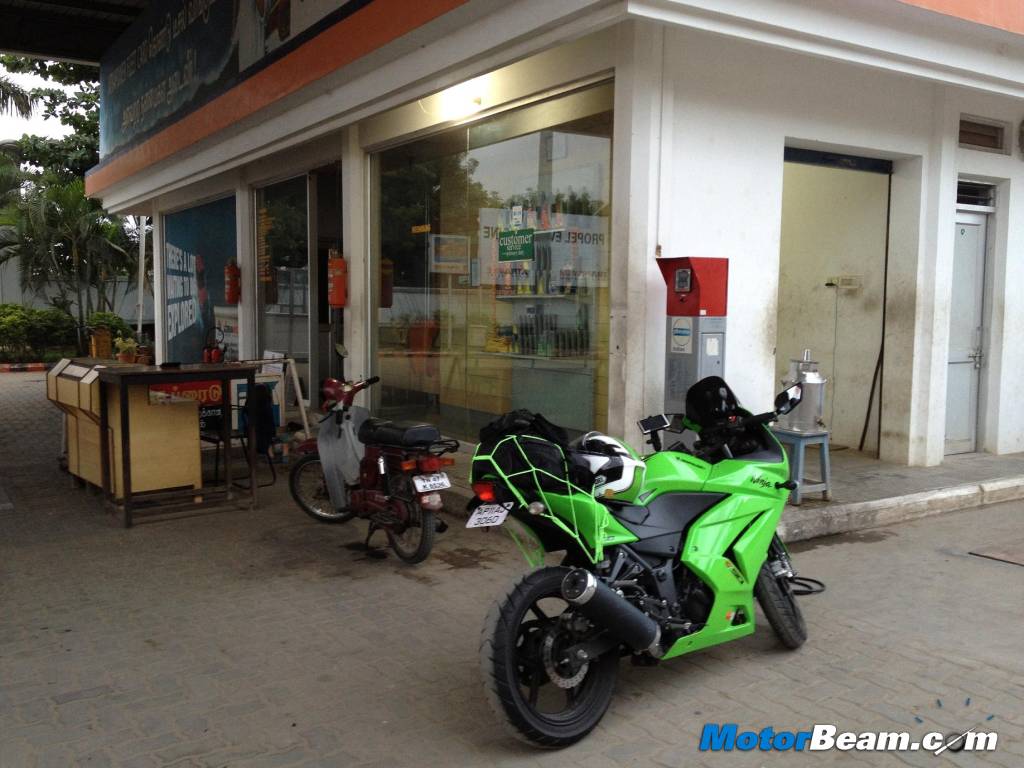 They were now very frustrated with speed breakers and bad roads in Bangalore which was eating away most of their time. On one of the speed breakers, Harsha almost lost control and rear ended Ram’s CBR. Harsha had small cuts on his leg due to the small mishap. They were clearly struggling to get through Bangalore, no one knew the routes in Bangalore and to make matters worse even the GPS was confused. Somehow after a very tolerant and patient phase and a few wrong turns later they found themselves underneath the big silk board flyover which reminded them of a lost opportunity as they needed to be ON the flyover so that they’ll have additional evidence from the toll gate as proof of passing through Banglore. They were faced with yet another problem of petrol reserve lights coming on all bikes and to make matter worse there wasn’t even a single petrol station open in that stretch at that hour. To further confirm their fears, they asked a passerby about fuel stations and he straight away said none of the stations around here are open. By now they’re regretting not stopping by at Devanhalli. So they kept riding past Bangalore and towards Tamilnadu hoping to find a fuel station open. They rode for 30km and the more economical of the bikes, the CBR E indicator started blinking as well but luckily they saw a fuel station which brought wide smiles to their faces.