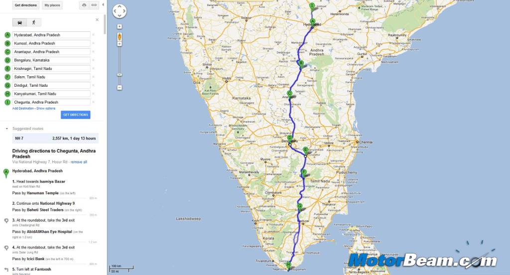 ROUTE: HYDERABAD-KANYAKUMARI-HYDERABAD-CHEGUNTA.