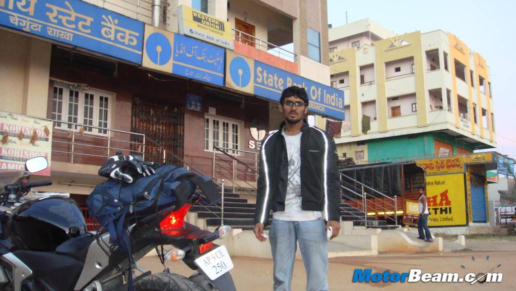 Few minutes later, they just couldn’t control their sleep so they had to stop every 50km for a break to keep them alert. This routine continued for the next 150kms which made the BB even more difficult that it already was but even then they didn’t want take additional risks which could very simply result in a mishap hence they rode very sensibly with proper breaks in between. They were now both hungry and sleepy so found a tea stall and sipped the hot tea, ate an omelette as they simply couldn’t control their hunger. Soon after that, sleep started hunting them again. Unable to deal with it, they stopped by and looked at each other wondering what to do and that is when a sound in Ram’s mind said “ try till u die but never quit “. He was mentally strong, so was Harsha and they had only one thing in mind “300km more and BB is ours!! That’s when the realisation of their ride hit them, the first Ninja in India and the first CBR in the world to do the BB2500 challenge. They can’t miss this opportunity after undergoing all the pain. After that both of them seemed to have beaten the sleep bug, Ram took the lead and started averaging speeds above 100kmph passing through hundreds of trucks and Volvos. Harsha was right on his tail following his lines. Within no time, they reached Hyderabad and the final destination was Chegunta which is 70km on the other side of Hyderabad. Ram grew up in Hyderabad so he knew every route in Hyderabad so that was an blessing, they took the fastest route and perhaps embarked on their scariest ride through their hometown ever as it was early in the morning and its usually the time when people start coming onto the road with sleepy heads. It was a hard time to concentrate on riding, escaping sleep and also to be alert for people jumping onto the road out of nowhere. They somehow managed to get out of Hyderabad quickly and headed toward Chegunta. After 60km of most numb riding, they found a board with a left sign marked for Chegunta. They took that turn hoping it’s the right turn and they ended up redlining in every gear. 4km later they found a board saying “Welcome to Chegunta“! Both were ecstatic! They then headed towards the nearest ATM and swiped their cards. And voila!! The challenge is done! The seemingly impossible obstacles have been overcome! Months of planning, days of efforts and there they are!