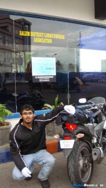 After resting for more than an hour, Abs decided it was time to start again and he rode with a will to complete the SS1600. Whenever the temperature needle started rising, he slowed right down to 40kmph and maintained the speed so that the needle comes down. This worked for him and he kept going with slowly increasing his speed for 60kmph, 80kmph and sometimes to 100kmph as long as his bike was allowing him to do so. He contemplated stopping by at Macdonalds near Krishnagiri but decided against it but he found it rather tempting though. During this painful ordeal of sometimes being overtaken by heavy trucks, slight drizzle (which worried him no end as he was wearing leathers) and intermittent stoppages of 30minutes each for every hour of riding, he never let any of this get to him! He called Ram and updated them about his status and was breathing a sigh of relief about their status even after Harshas exhaust mishap.