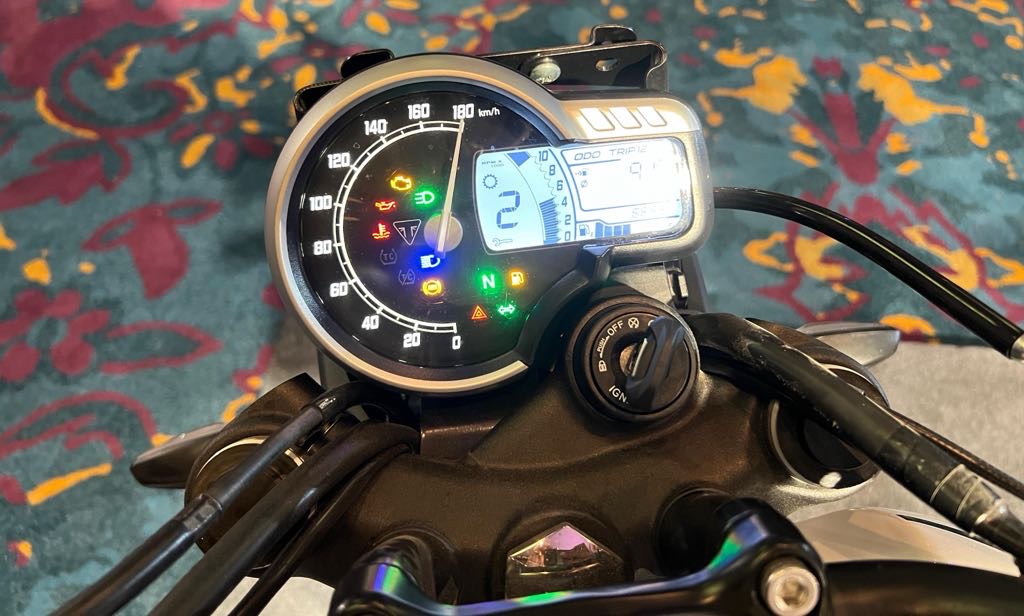 - Tyres and Seat: One of the significant changes is the introduction of new Vredestein tyres, with thicker sidewalls for enhanced durability. The tyre sizes have also increased slightly, resulting in a taller stance for the bike. Additionally, the seat has been updated with 10 mm more padding, but Triumph has reshaped the seat to maintain similar ground reach.