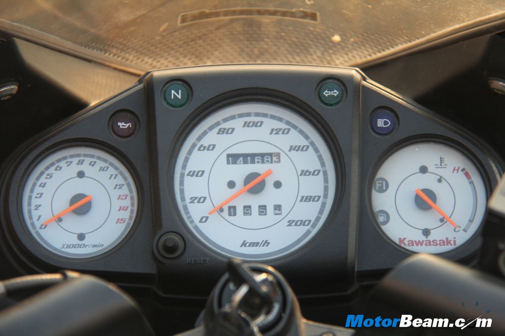 All these bikes have modern instrument clusters (except the Kawasaki Ninja 250R) with analogue tachometer taking centre stage and a digital speedometer tucked neatly somewhere around it (except the Duke 200, which has a fully digital console). The most tech laden console is undoubtedly that of the Duke 200 but the small fonts and poor anti-glare properties really makes it difficult to read in bright sun light. The Ninja 250R’s bare basic console doesn’t justify its price tag, while the Pulsar 200 NS’ cluster is among the best in terms of design appeal. Rest of them are quite average and not really something which make you skip a beat. The CBR150R uses a cheaper version of the CBR250R’s console. Switchgear quality is good on all these bikes with the exception of the Honda CBR150R, which feels downright cheap. The R15 feels a step up than others in the way the buttons operate but overall, the Duke 200 and Pulsar 200 NS feel the most appealing in overall console design and switchgear quality.