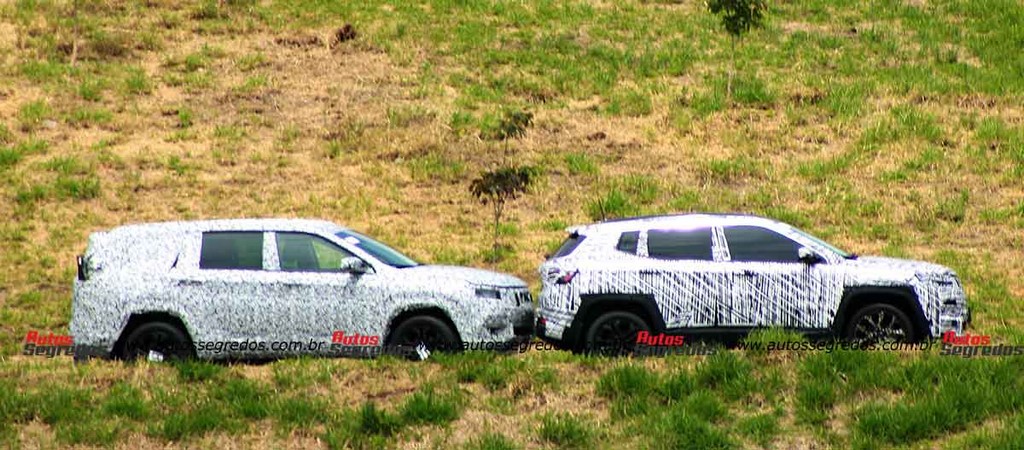 The upcoming 7-seater variant of the Jeep Compass has been spied on test alongside the 5-seat version overseas.