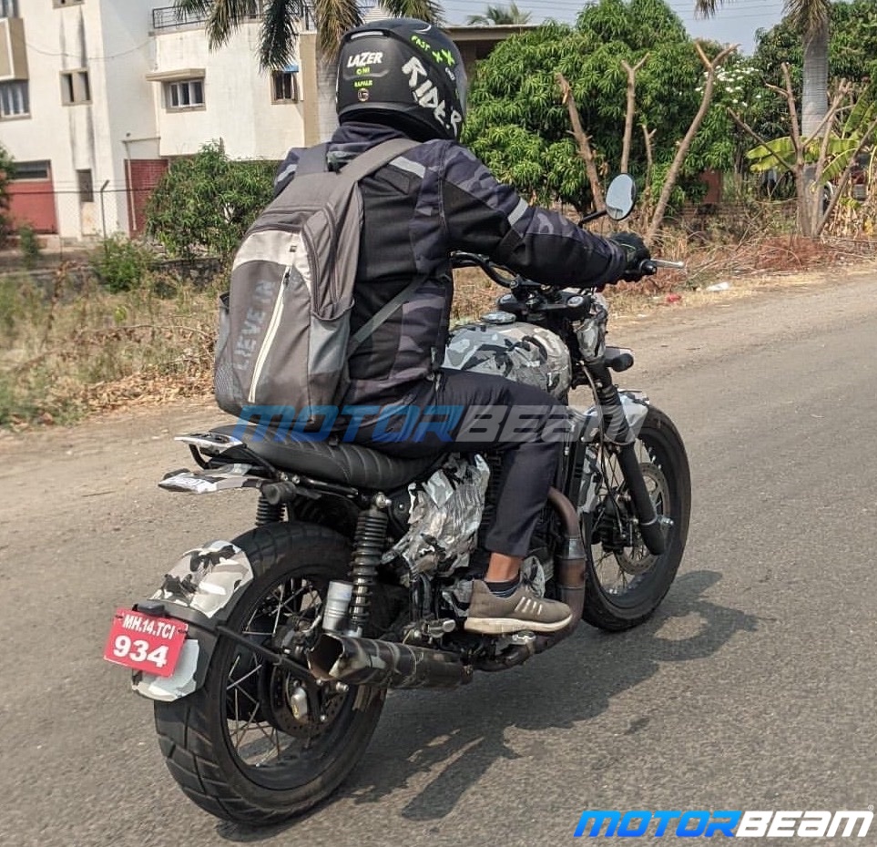 The Yezdi scrambler spied on test has a single piece seat, twin rear shocks, a short, clipped tail housing the indicators and a tyre hugger with the number plate holder.