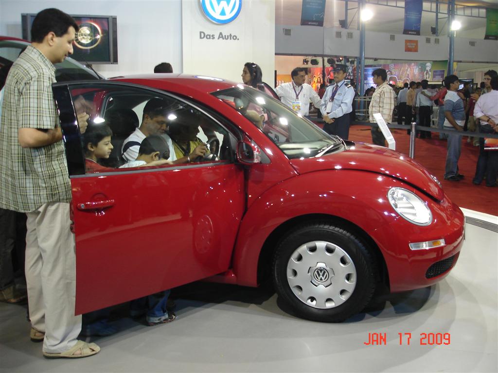 The Beetle has 2 doors and 4 seats. It has a 1.6 liter petrol engine from the Jetta which is kind of yawn! The Beetle is shod with 195/60/15 tires. The VW saleswoman said that the car costs Rs. 14 lacs abroad so the India price will depend on the level of localisation. Surely the car was the center of attraction for many kids but i don’t see many buying one, especially when it will cost as much as a Mini Cooper, which also happens to be coming soon to India.