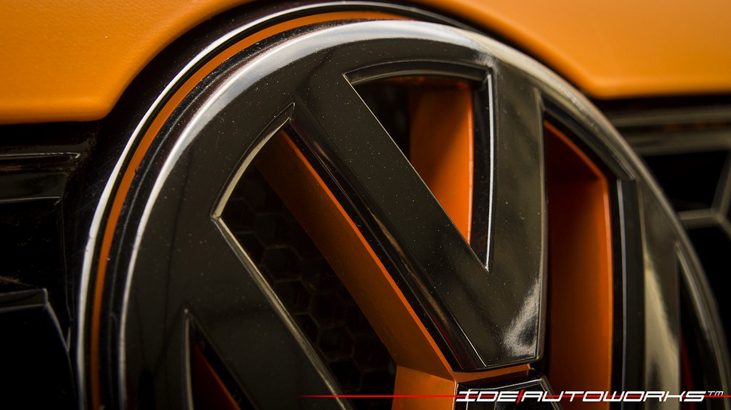 The front end of the matte orange finished Polo reveals a Euro spec headlight cluster which has black and silver elements. The GTi grille along with the VW logo is finished in matte black and is underlined by a strip of orange according to the design theme. The side profile boasts of dark grey treated alloy wheels with orange finished VW logo. The B-pillar is blacked out and special attention has been given to the roof, which has turned into gloss black to provide a prominent body contrast altogether. The ORVMs features a unique bar code, which is the trademark design of IDE AutoWorks.