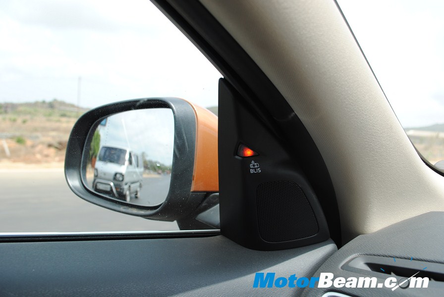 The BLIS (Blind Spot Information System) ensures your blind spot is clear all the time. A camera is mounted below the external rear view mirror, which moniters objects in the blind spot and alerts the driver via a small light as shown.