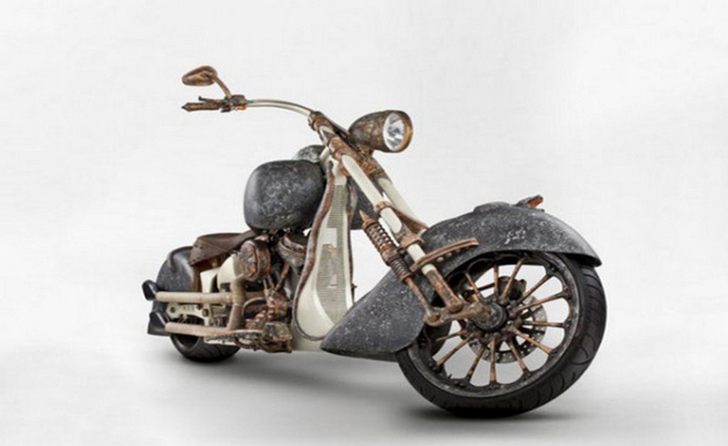 To ease out the bling factor of gold, the motorcycle wears a rusty tone of brown and grey colour shades with an aged and weathered appearance for a unique look. It took over a year to build the custom motorcycle from ground up. The bike features a 1801cc RevTech V-Twin engine that produces a maximum power of 125 HP, mated to a 6-speed manual gearbox. With all the heavy elements including the hefty engine, the motorcycle weighs over 700 pounds (317 kgs).