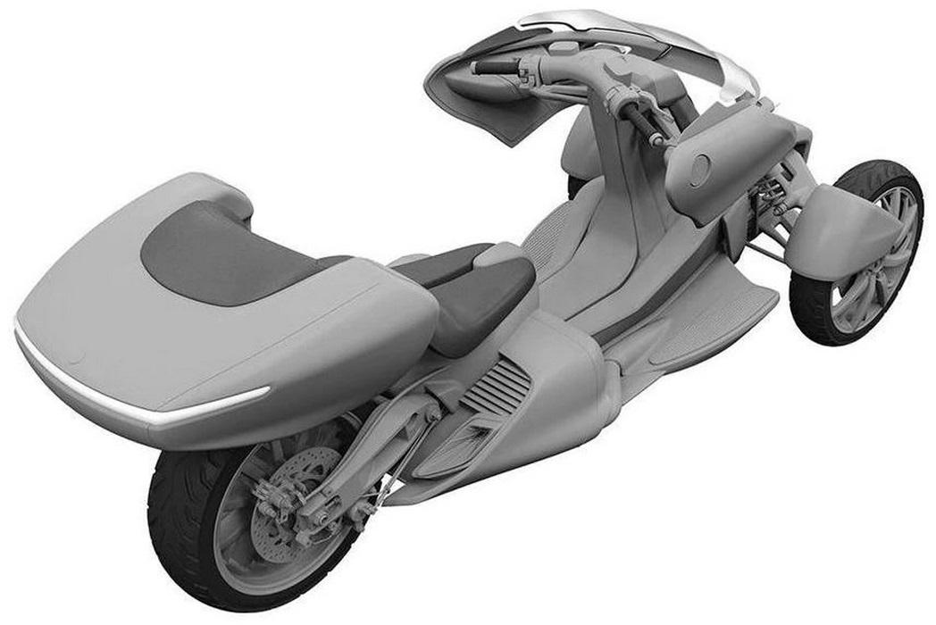 Patent images filed with the Japanese Patent Office (JPO) reveal that Yamaha hybrid leaning trike development is underway.